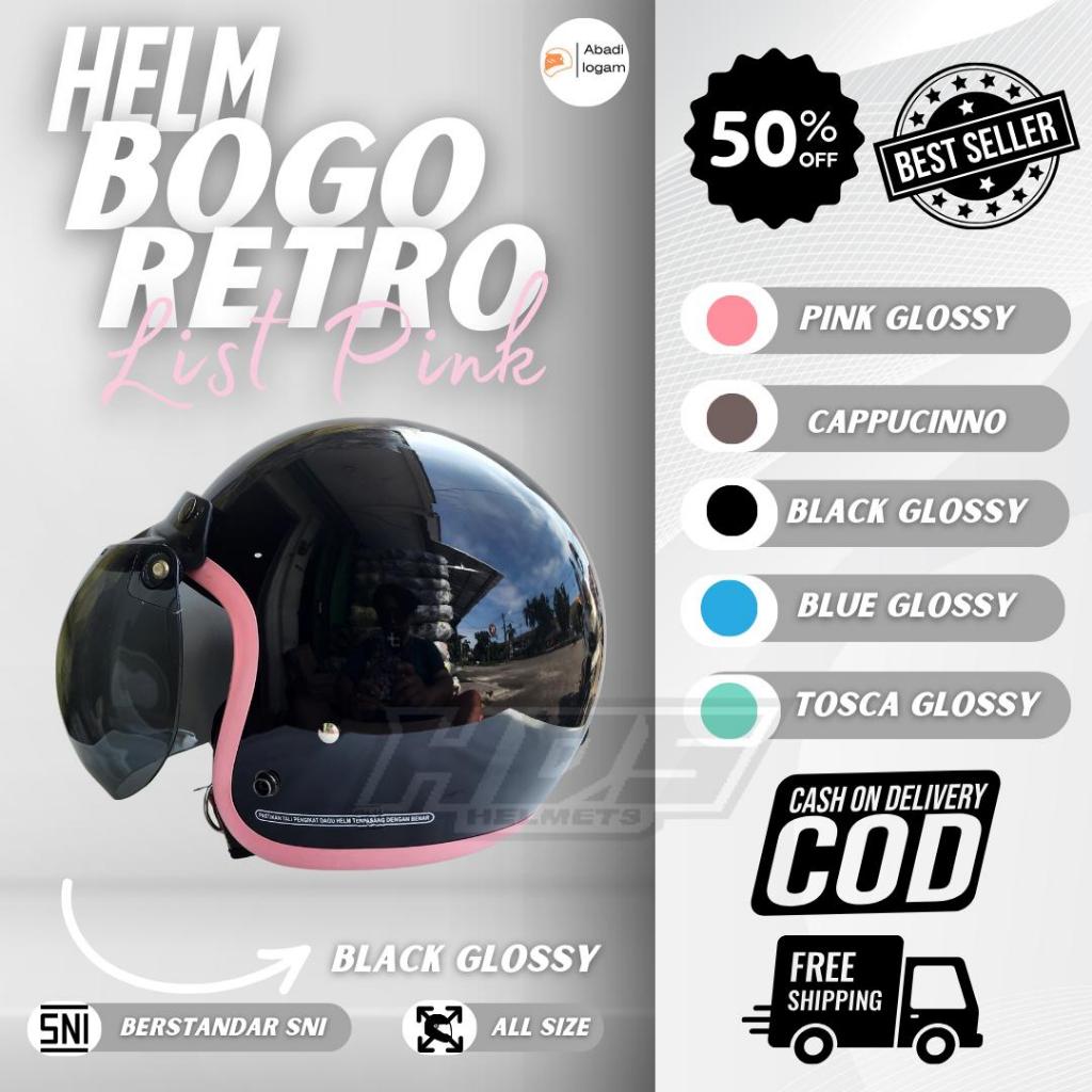 Helm Bogo Dewasa Classic Half Face Murah Cowok Cewek Hijab SNI HDS Helmet List Pink Pria Wanita