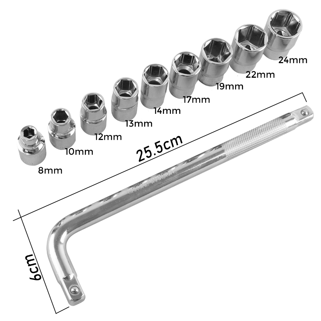 Allefix Kunci Set Sok Isi 10 Pcs Kunci Shock Socket 1/2 INCH Set 10pcs- G-10017
