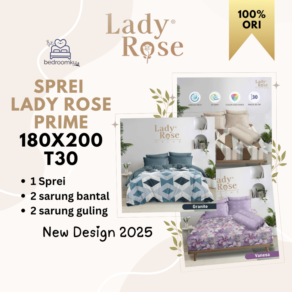 Sprei Lady Rose Prime 180x200cm T30 King Size No 1 Motif Terbaru