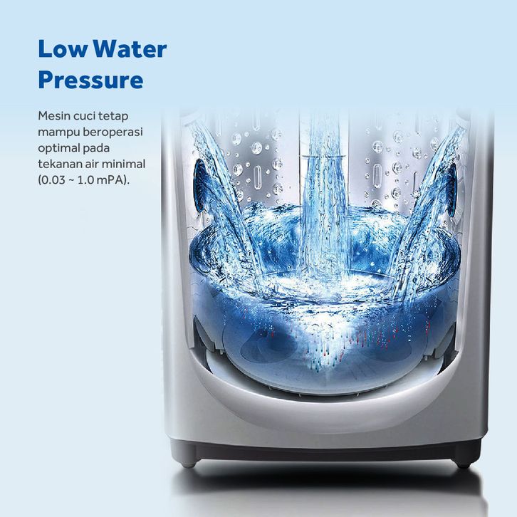 AQUA Mesin Cuci Top Loading 8 Kg Automatic Dynamic Soak Function AQW-88 DDBK Garansi resmi