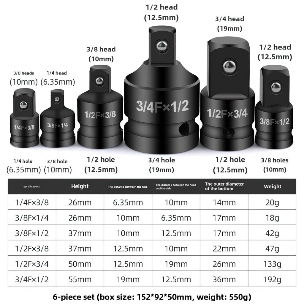 Allefix Adaptor Kunci Shock Impact 1/4 x 3/8 x 1/2 x 3/4 Sambungan Socket- 6781