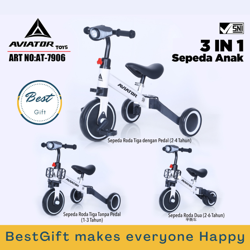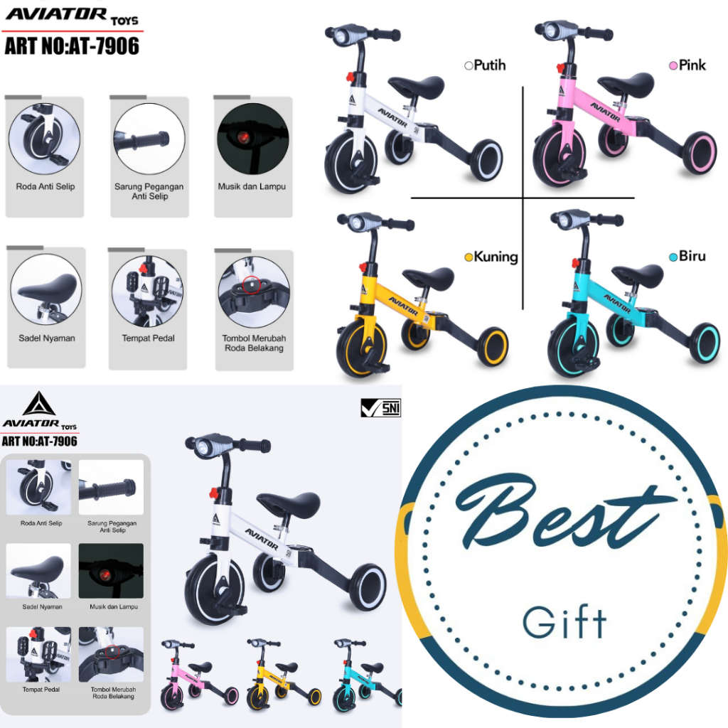 BALANCE BIKE 3IN1 AVIATOR AT-7906 ADA LAMPU DAN MUSIC