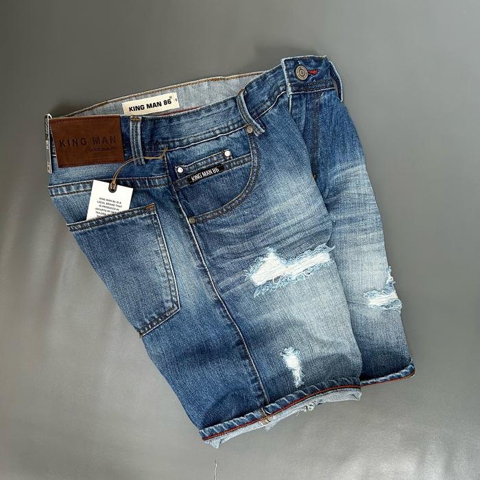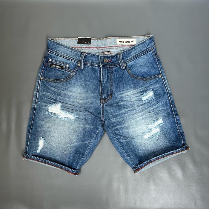KING MAN 86 CELANA PRIA JEANS PENDEK SOBEK SKINNY COWOK DEWASA - LIGHT GREY, 27