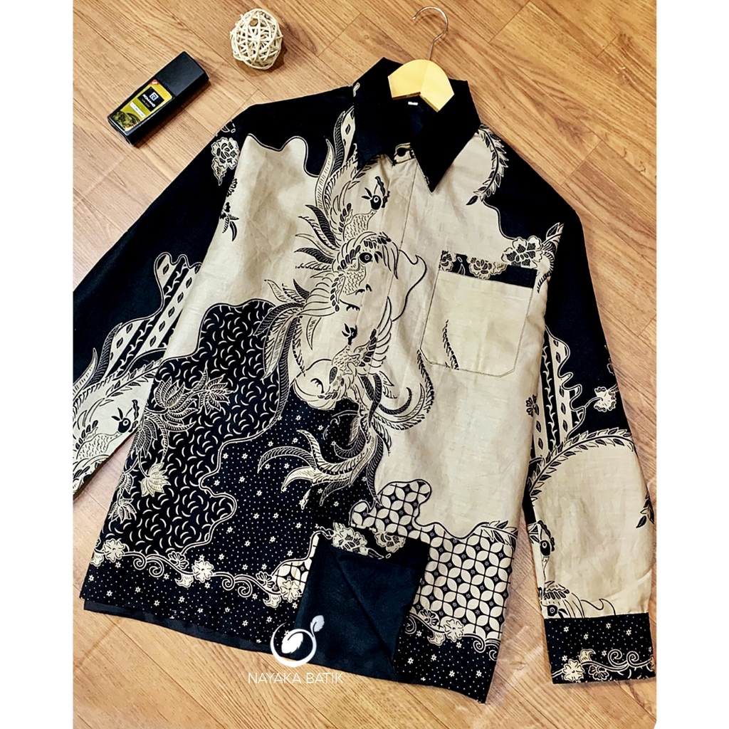(Motif Baru) New Arrival Promo Big Sale Kemeja Batik Pria Premium Full Furing Hitam Lengan Panjang M L Xl Atasan Cowok K