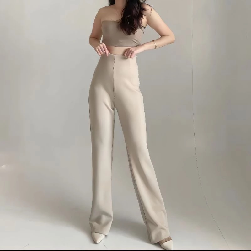 Celana Fit & Flare Pants Cutbray Scuba Pinggang Highwaist Bahan Stretch Melar Elastis Silmy