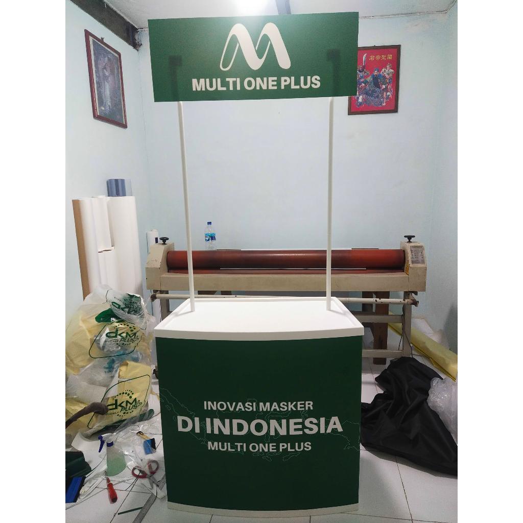Event Desk Polycarbonate ( plus rak tengah)-Meja Jualan-Meja Promosi-Meja Pameran-Booth Portable tanpa cetak