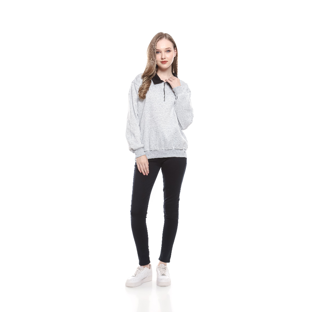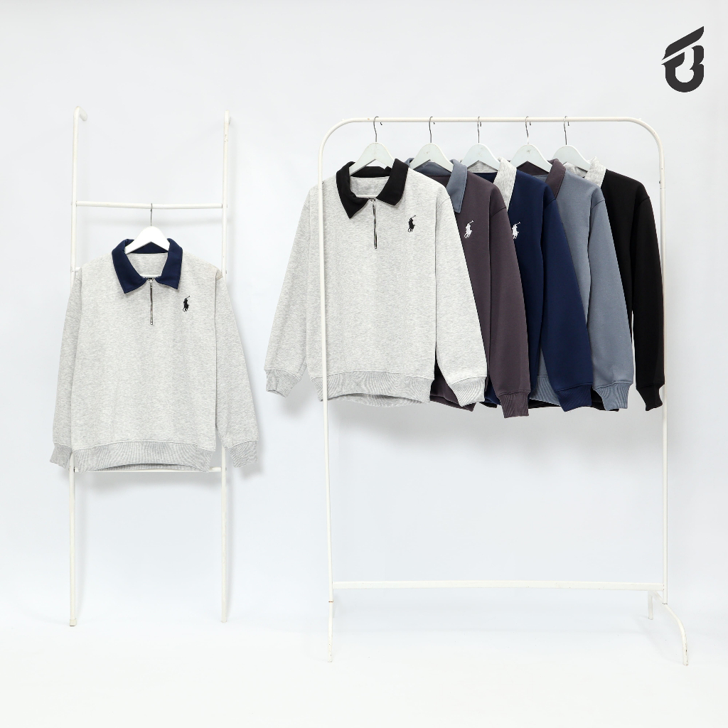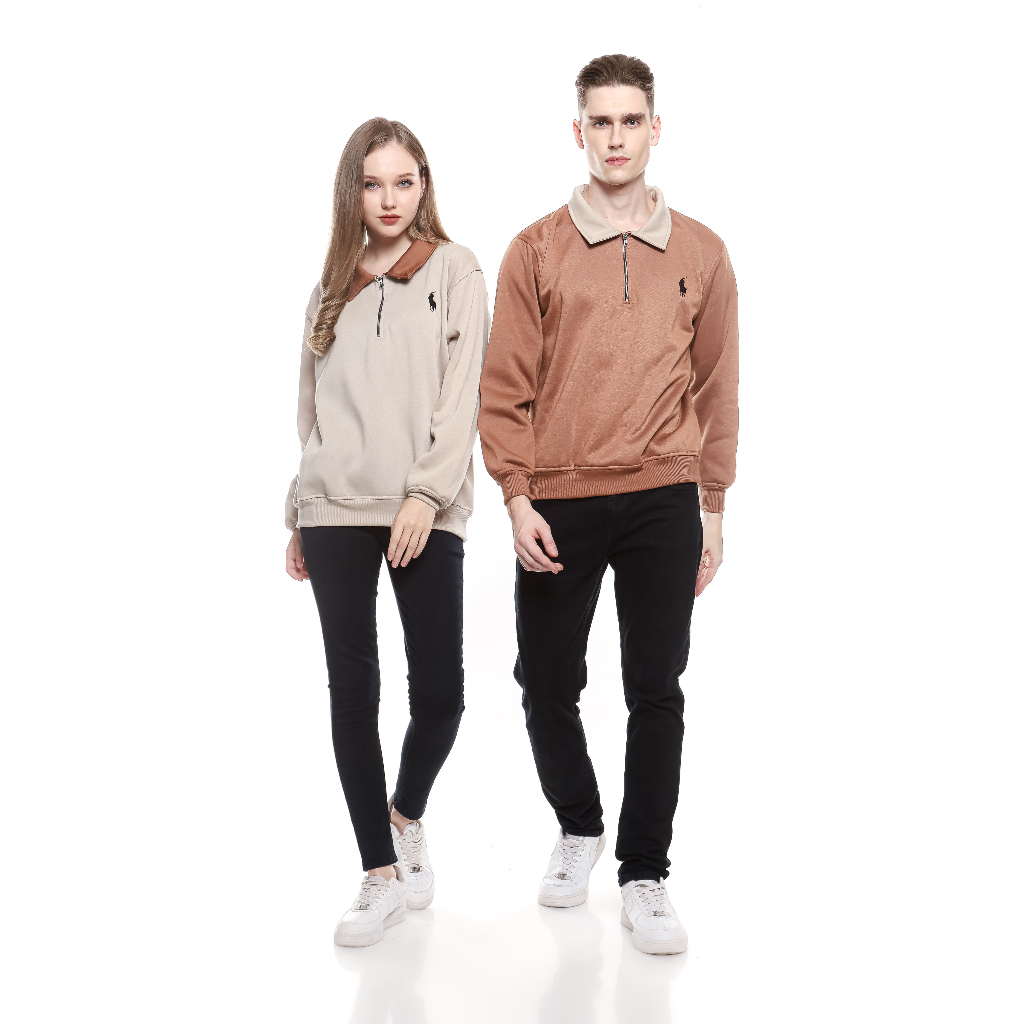 Sweater Crewneck Half Zipper Rugby Kerah Kombinasi Logo Bordir Premium Fleece High Quality Couple Pria Wanita Casual Len