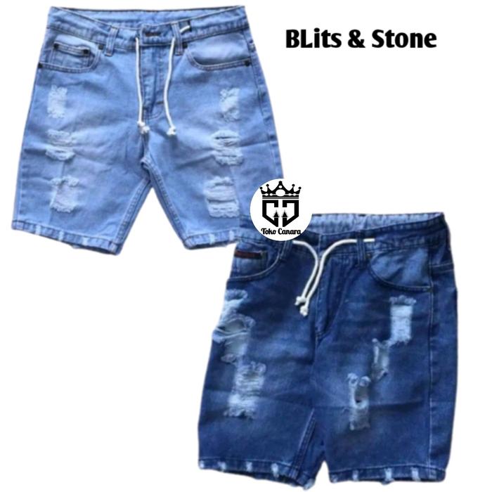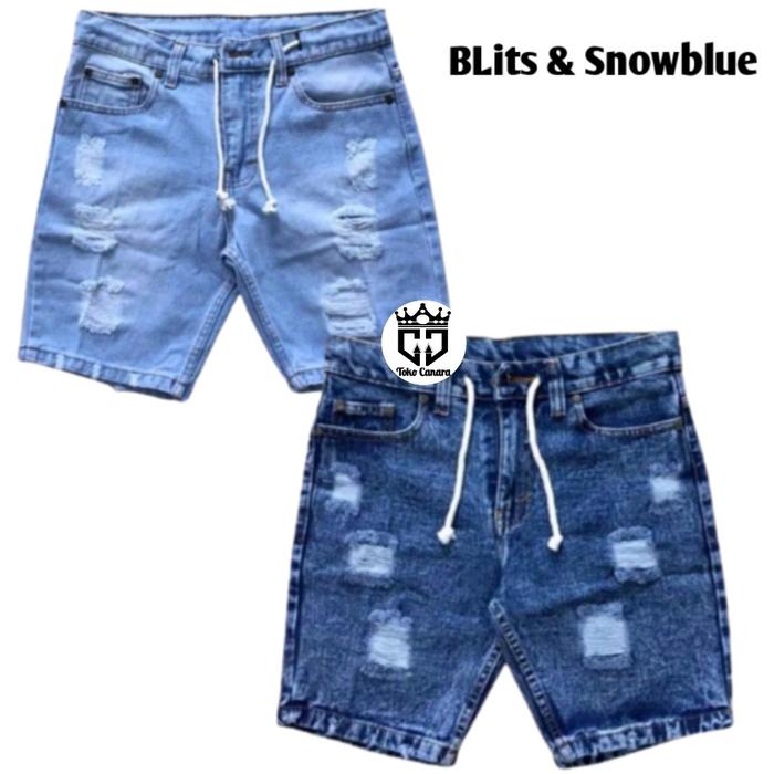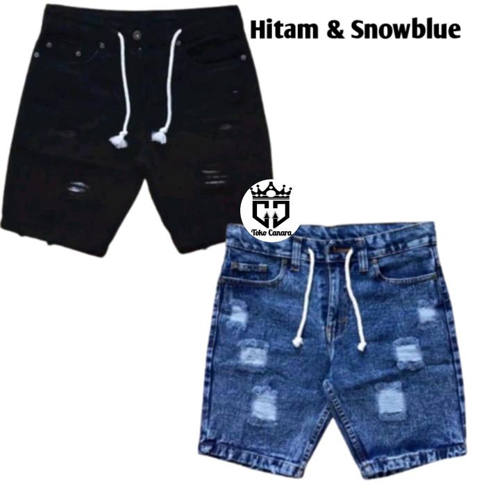 PAKET 100RB AN 2PCS CELANA PENDEK SOBEK JEANS PRIA SANTAI DENIM DEWASA - BLITS HITAM, 27