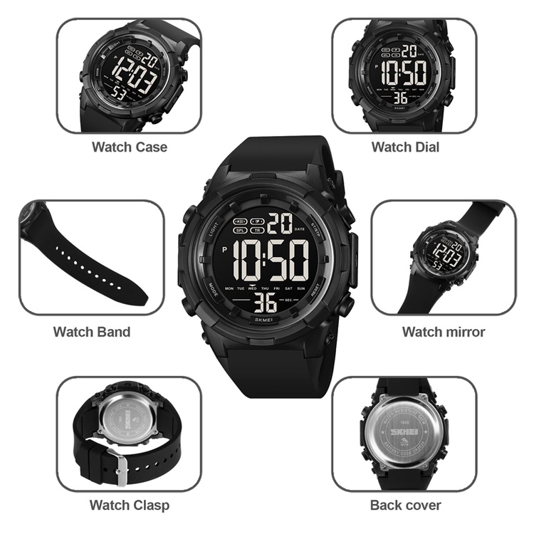 Skmei 1845 Jam Tangan Pria Digital Sport Watch Tali Rubber Anti Air 5 Bar Mgos