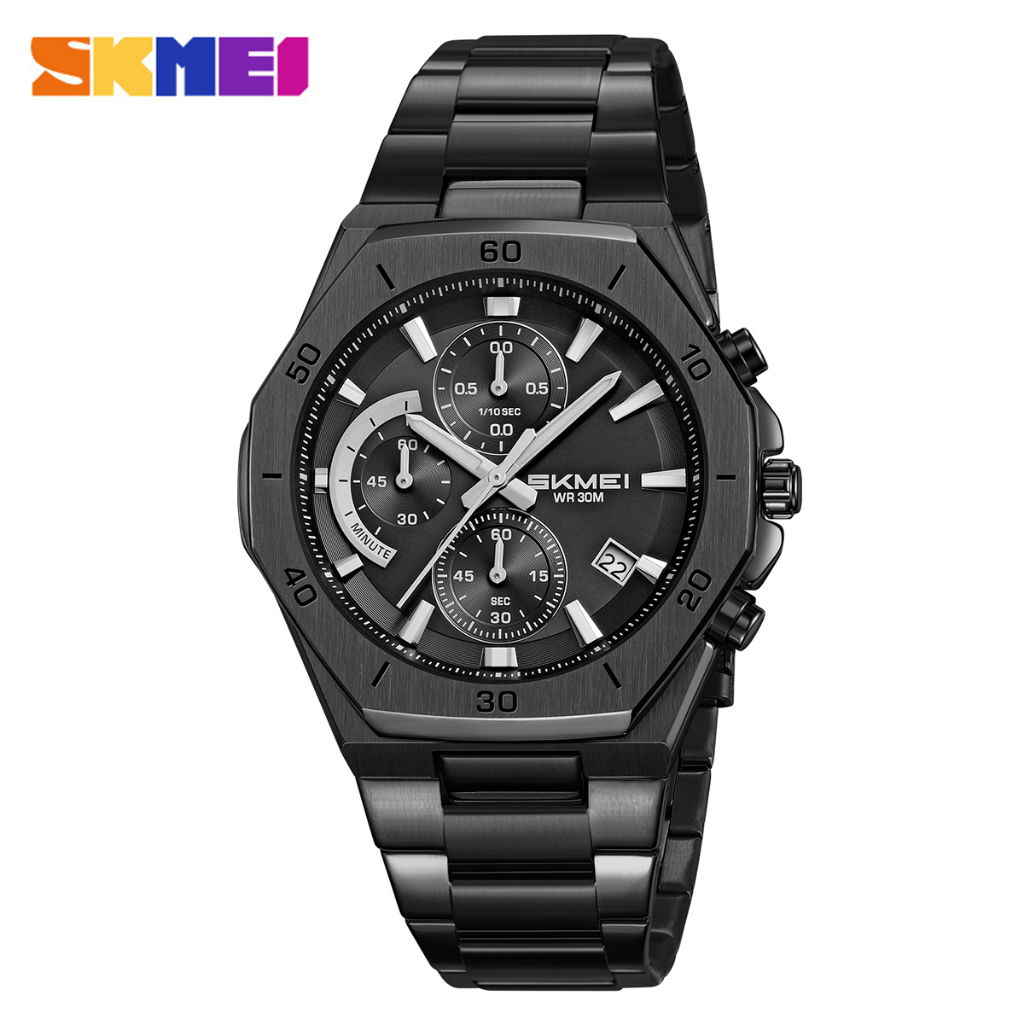 Skmei 2452 Jam Tangan Pria Analog Chronograph Tali Stainless Rantai Mgos