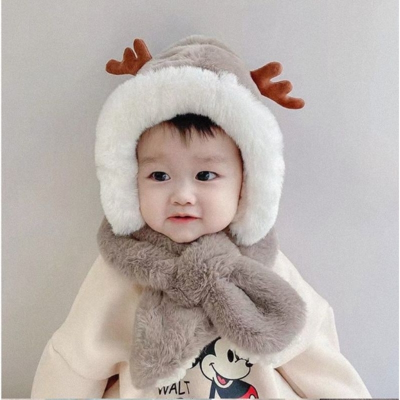 Kupluk Anak topi kupluk anak bertanduk bahan halus tebal sangat nyaman di pakai