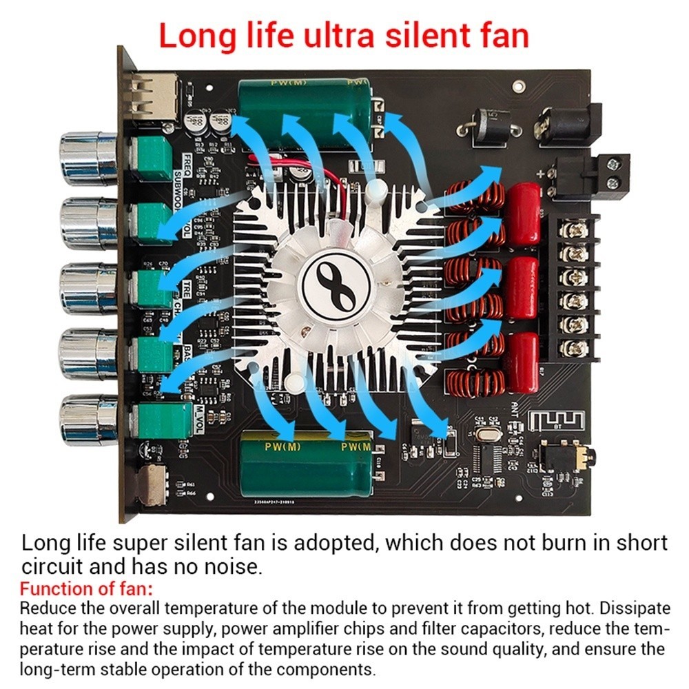 Wuzhi Audio | ZK-HT21 Bluetooth digital power amplifier modul 2.1 channel 【TDA7498E】 subwoofer nada tinggi dan rendah 16
