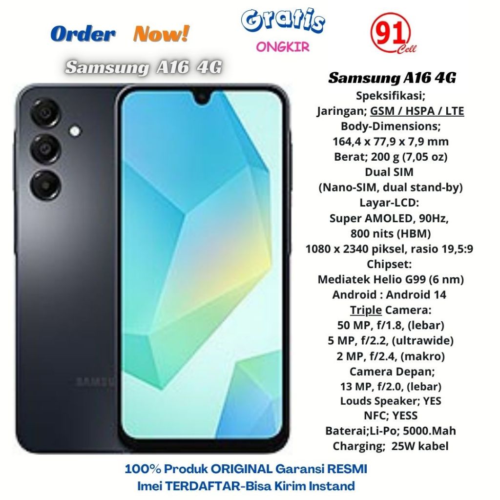Samsung Galaxy A16 4G Original (Ram8/256Gb)/(Ram8/128Gb) Garansi Resmi