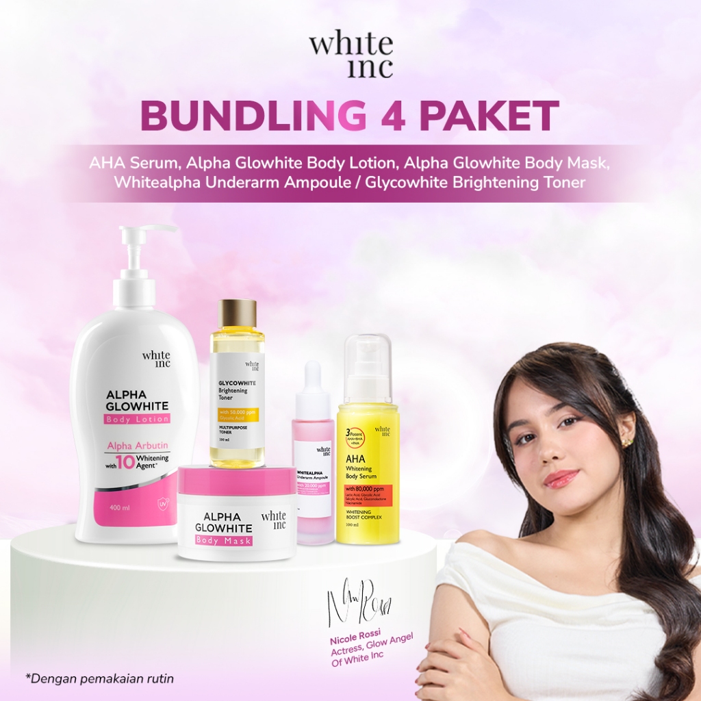 WHITE INC 4pcs paket Alpha Glowhite Body Lotion + AHA Body Serum + Alpha Glowhite Body Mask + Underarm