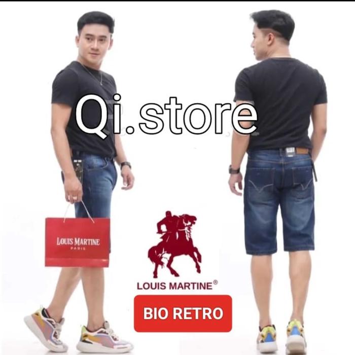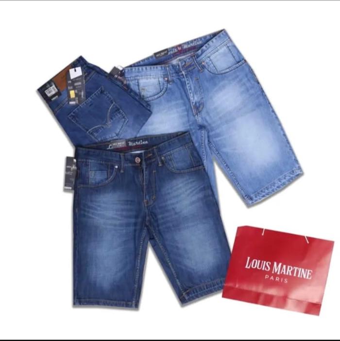 CELANA PENDEK LOUIS MARTINE ORIGINAL DENIM NYAMAN PRIA SANTAI TEBAL HITAM DISTRO DEWASA PANJANG CASUAL BIRU JEANS NAVY KATUN KATUN - BIO BLITS, 28