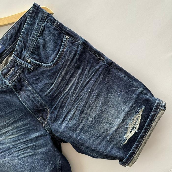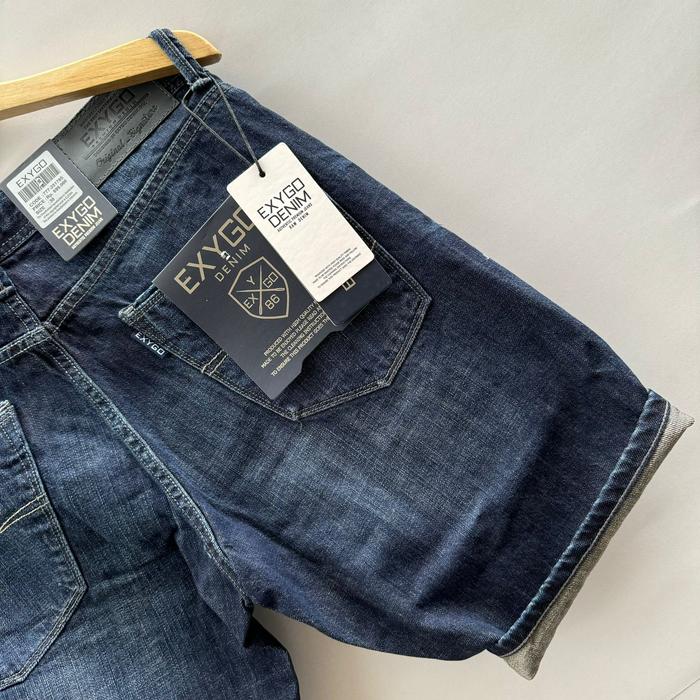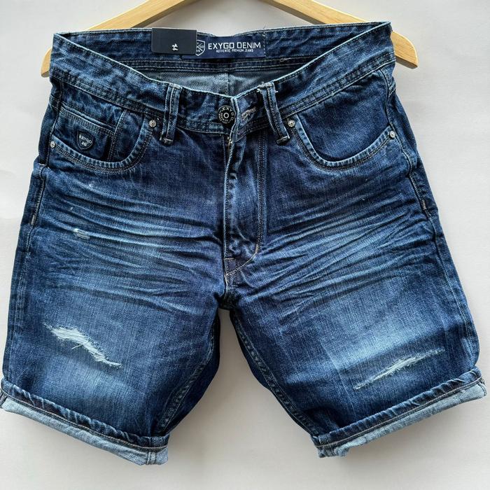 CELANA PENDEK PRIA EXYGO DENIM SOBEK RIPPED - SLIM FIT KANCING ZIPPER FLY, WARNA TIDAK LUNTUR 28-34 - BLUE BLACK SOBEK, 28