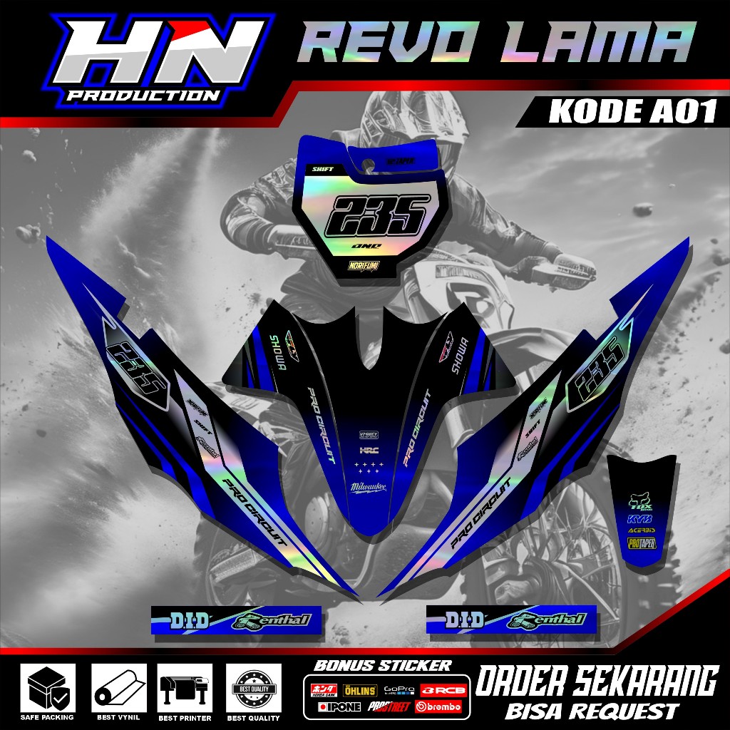 Sticker RBT REVO OLD/LAMA HOLOGRAM SETIKER SEMI DECAL MOTOR RBT BEBEK IF SUPERMOTO YZ CRF KLX KX KTM HN A01