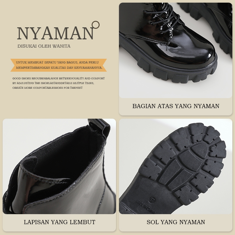 Vansico Sepatu Boots Wanita Korean Style Sepatu Oxford Wanita Sneakers Boots Anti Air Glossy/Doff Sp099
