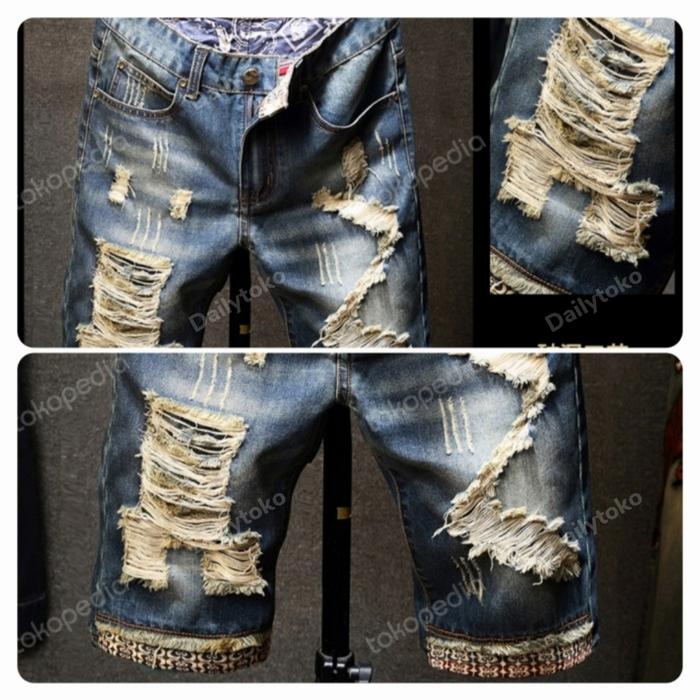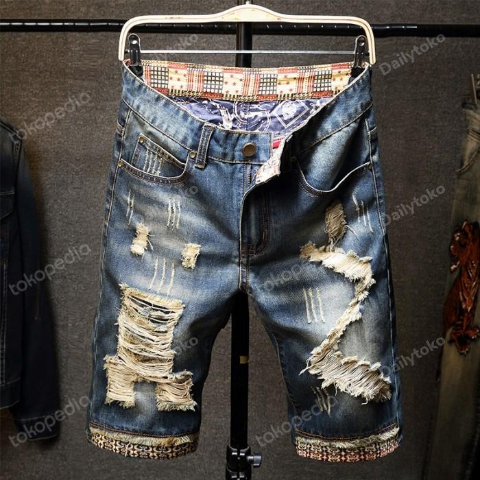 CELANA PENDEK JEANS RIPPED PRIA STYLE KOREAN TERBARU 2021 - BIRU VINTAGE, 28