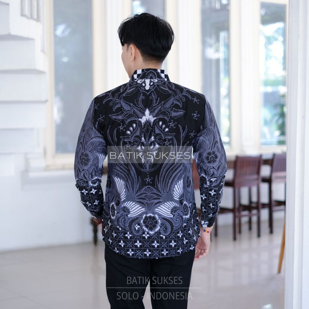 Ajisaka Abu Hem Atasan Kemeja Baju Batik Pria Cowok Laki Laki Lengan Panjang Slimfit Full Lapis Furing