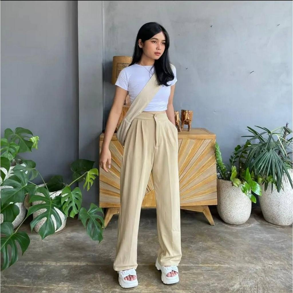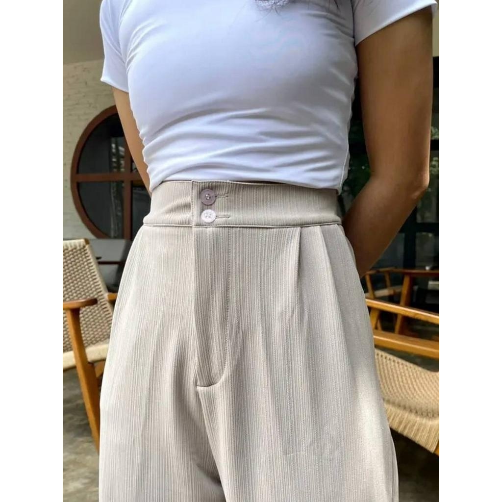 Celana Kulot Jennie Knit Pants Kancing 2 Resleting Loose Pants Wanita Highwaist