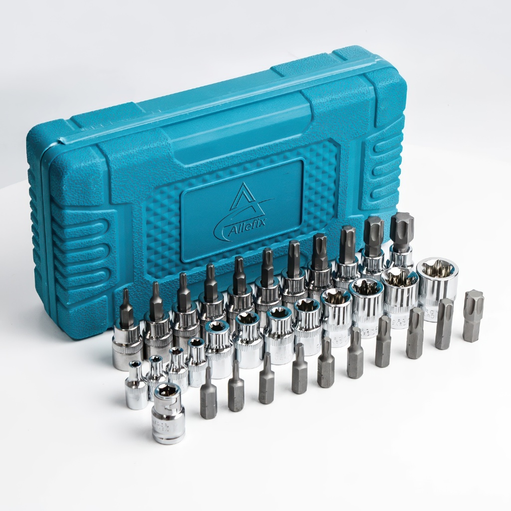 Allefix Kunci Torx Bintang Mata Kunci 1/4 Inch 3/8 Inch DR E Torx Bit CRV Set 34PCS- 6651