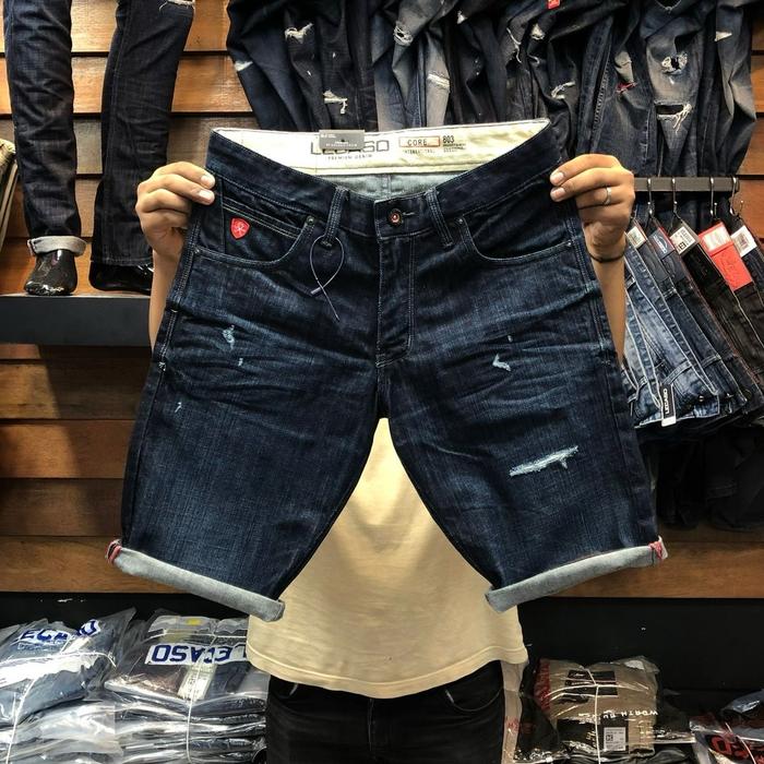 CELANA PENDEK PRIA/CELANA IMPORT ORIGINAL/CELANA PENDEK LECASO/CELANA DENIM BRENDET LOW WAIST NYAMAN - SOBEK LECASO, 28