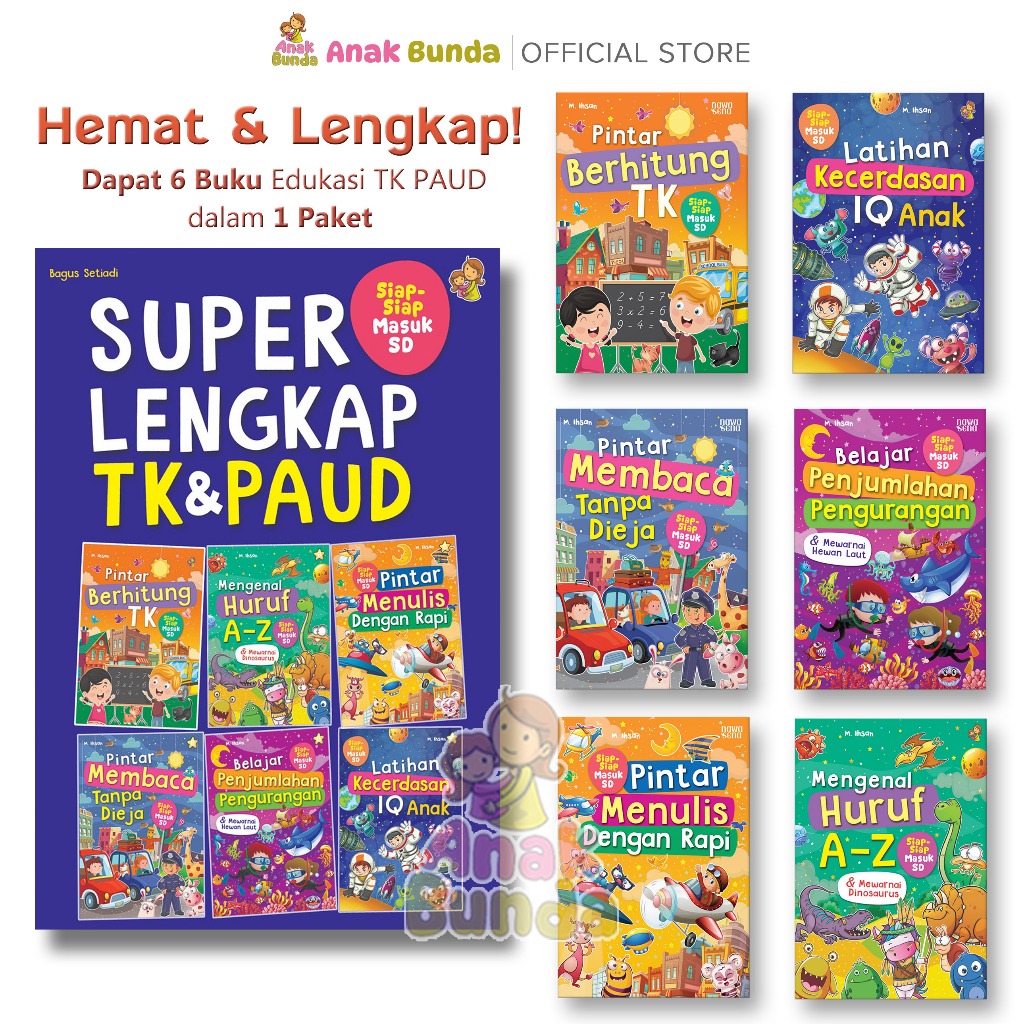 SUPER LENGKAP TK PAUD 6 IN 1 Pintar Menulis Membaca Mengenal Huruf Angka buku edukasi untuk buku anak pintar / Mengenal