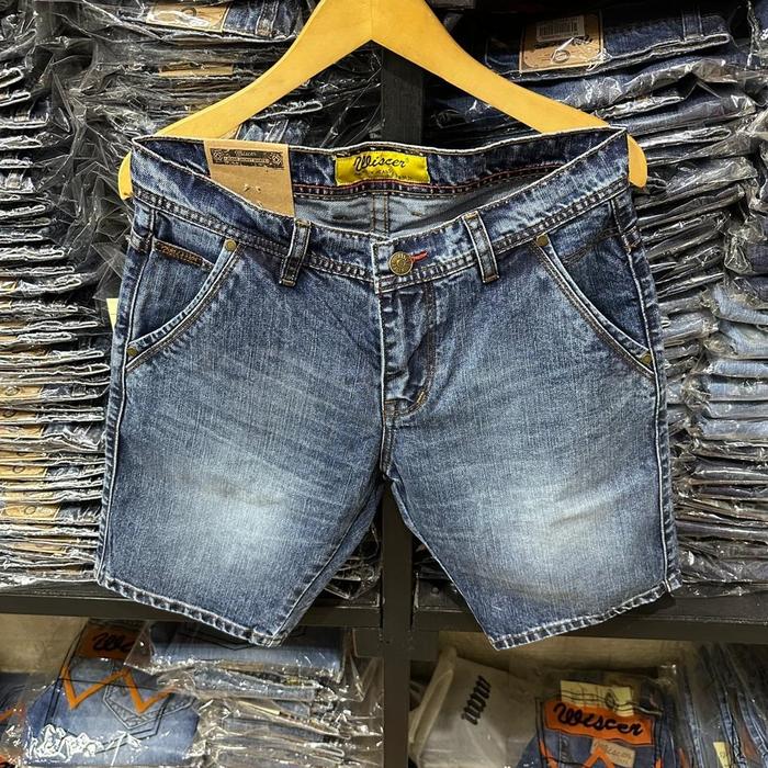 CELANA PENDEK JEANS PENDEK POLOS PRIA MC WISCER TERBARU CELANA DENIM SKINNY - BLUE BLACK, 27