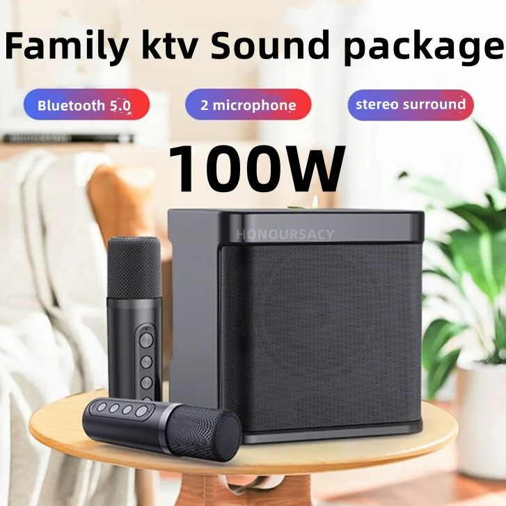 UNIG Speaker Bluetooth Karaoke KTV Speaker Bluetooth 2pcs Mic Wireless + Subwoofer