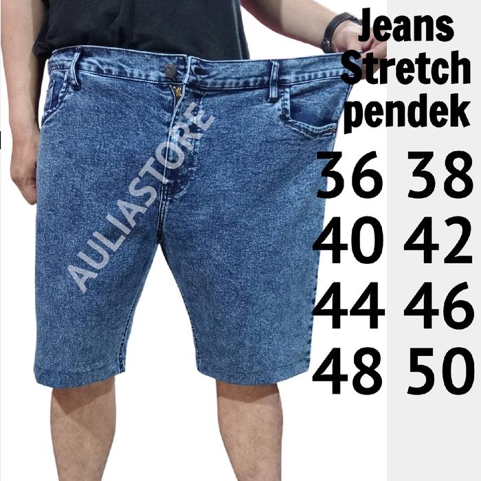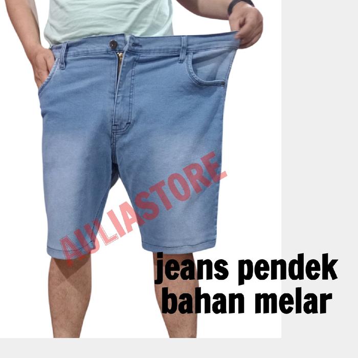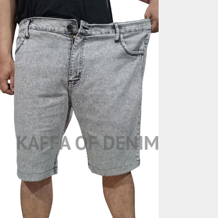 CELANA JEANS PENDEK JUMBO PRIA BAHAN MELAR DENIM PENDEK - PUTIH PENDEK POLOS, 36