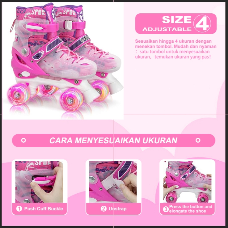 Peningkatan baru、Sepatu Roda Anak Adjustable Lucu & Nyaman - Cocok Usia 3-10 Tahun Lampu LED