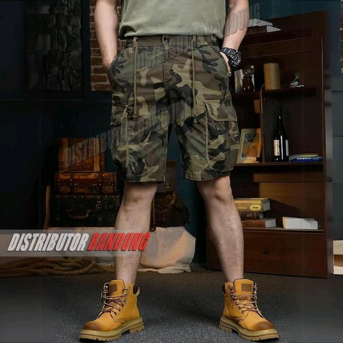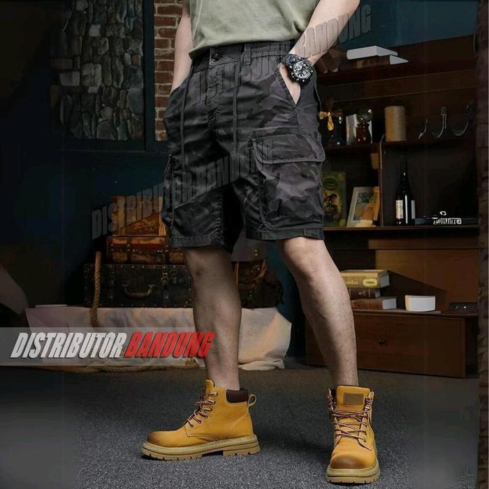 SHORT CARGO COMBAT CAMAOUFLAGE GEN Z CELANA PENDEK CARGO - SHORT COMBAT CAMO BLACK, M (28-29)