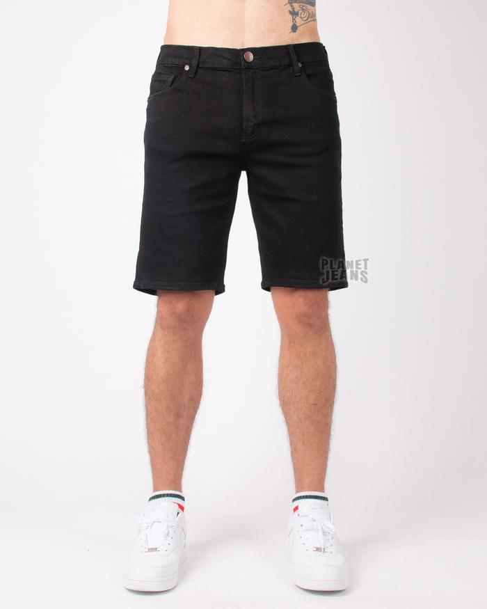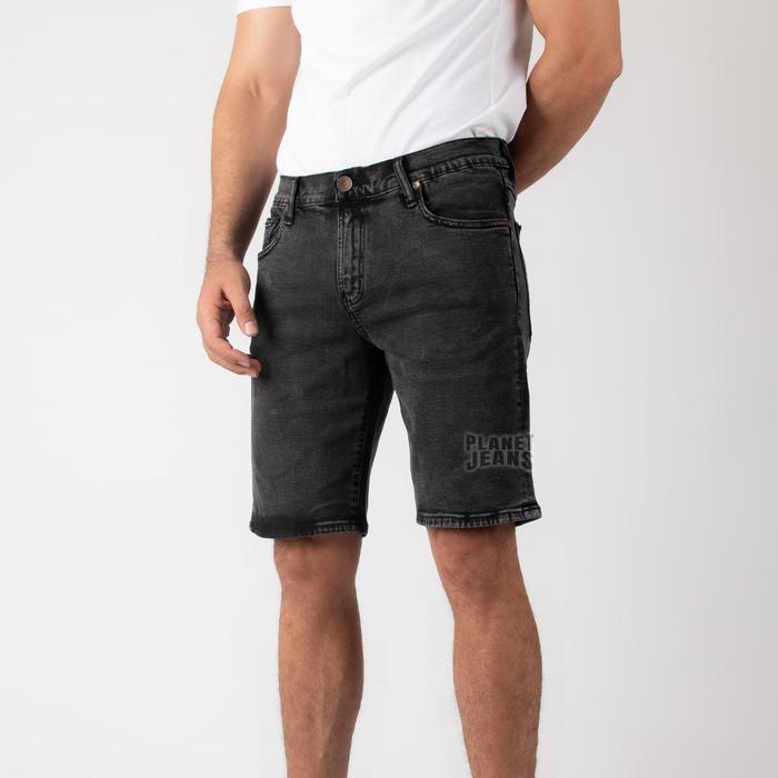 KADEO 210 - JEANS PENDEK PRIA SLIM FIT SHORT DENIM STRETCH - TRUE BLACK, 34
