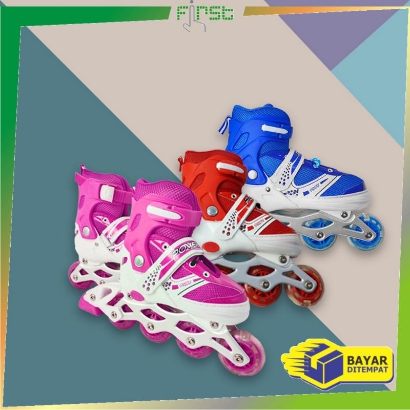 Sepatu Roda inline skate +HELM+DEKKER Full Set Original / Sepatu Roda Bajaj Merek Power