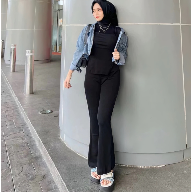 Celana Fit & Flare Pants Cutbray Scuba Pinggang Highwaist Bahan Stretch Melar Elastis Silmy