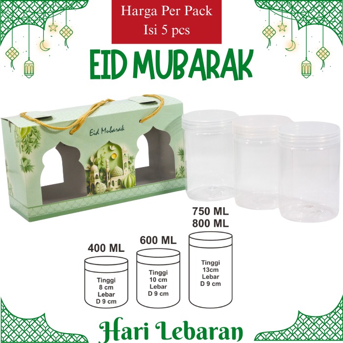 Kotak Toples Jar Isi 3 Toples, Paper Bag Tabung Idul, Dus Toples Kue Kering, Jendela Mika (5 PCS)