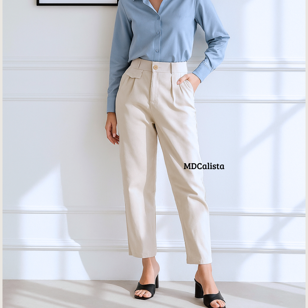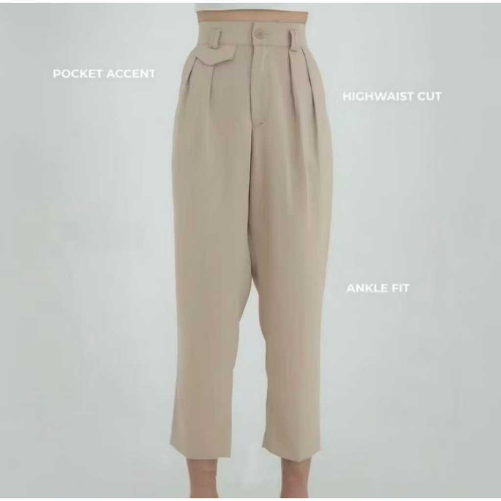 Ara Basic Pants Highwaist - Celana Kantor Wanita - Loose Pants Casual Wanita Karet Kerja Formal