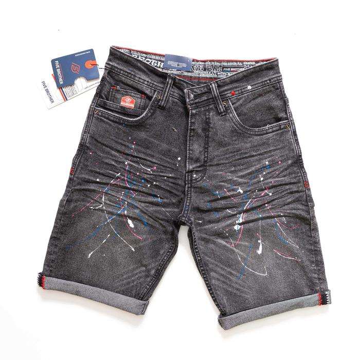 CELANA PENDEK MOTIF ABSTRAK SELVEDGE PREMIUM - HITAM SPRAY, 28