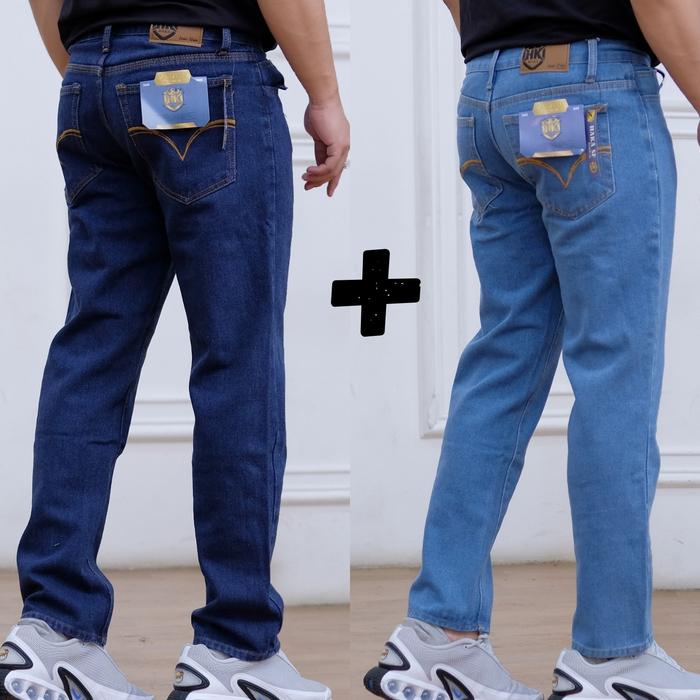 CELANA JEANS STANDAR PRIA REGULER BELI 1 GRATIS 1 (2PCS) - NAVY + BIRU MUDA, 27