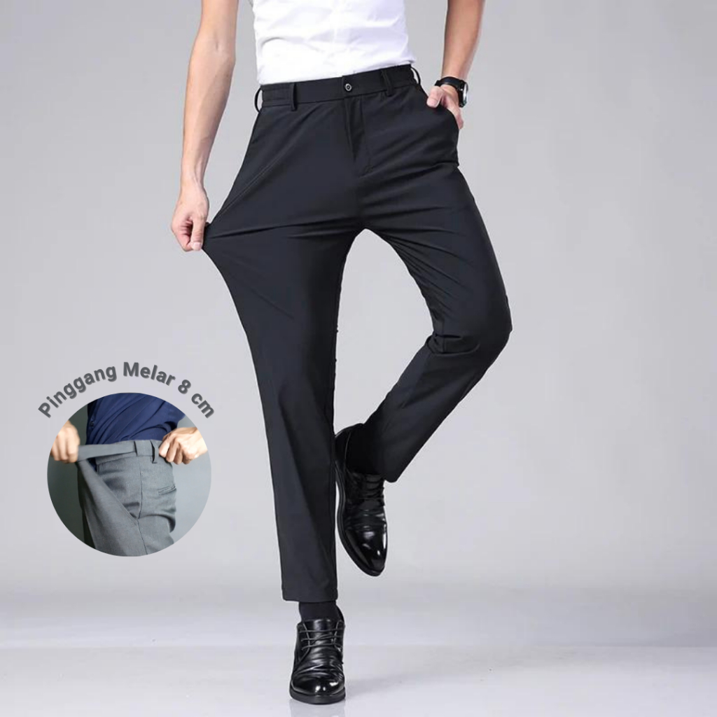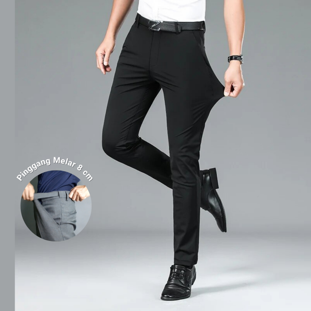 Babazeg Celana Formal Bahan Melar/Stretch Slim Fit Pria, Pinggang Melar