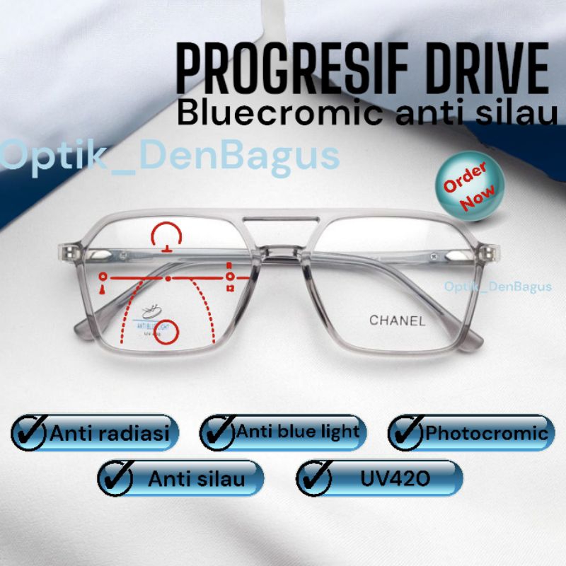 progresif kacamata bluecromic Drive anti silau anti radiasi blueray photocromic bluecromic pria dan wanita/ kacamata fashion progresif bluecromic drive