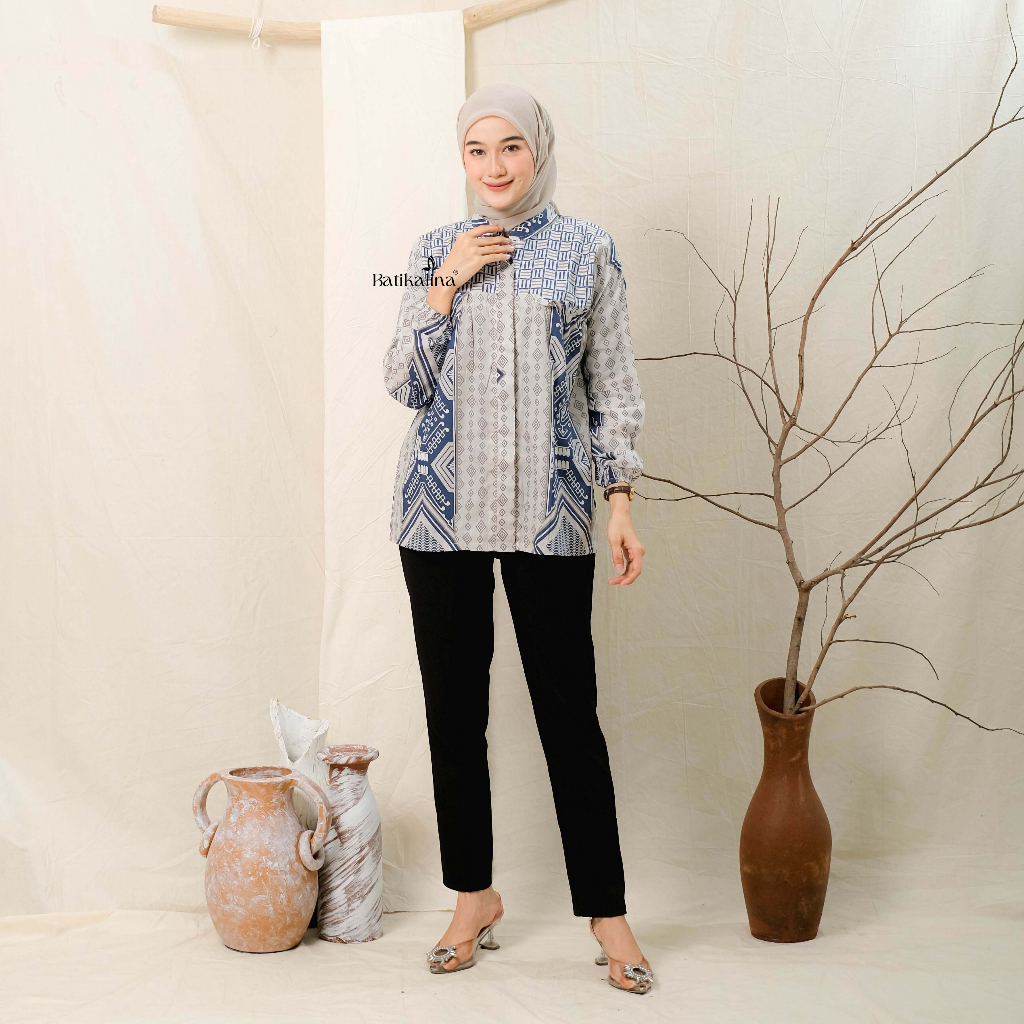 Baju Batik Wanita Modern Atasan Blouse Batik Kerja Kantor Wanita