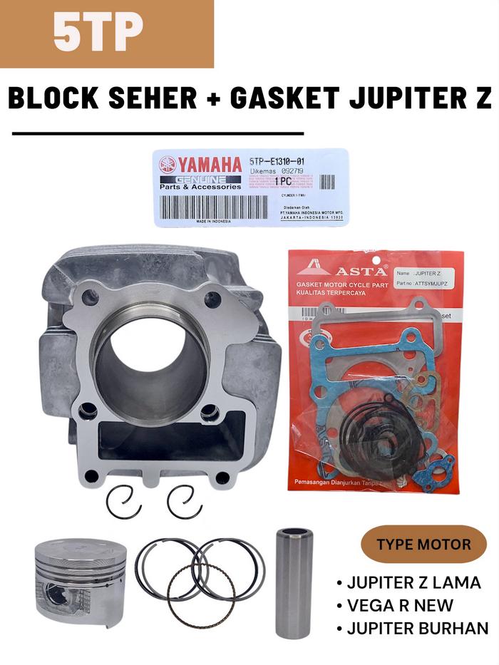 BLOK SEHER PISTON KOMPLIT 51MM JUPITER Z LAMA + GASKET FULL SET JUPITER BURHAN VEGA R NEW 5TP MOTORCYCLE - BLOK SEHER SET + GASKET JUPITER Z