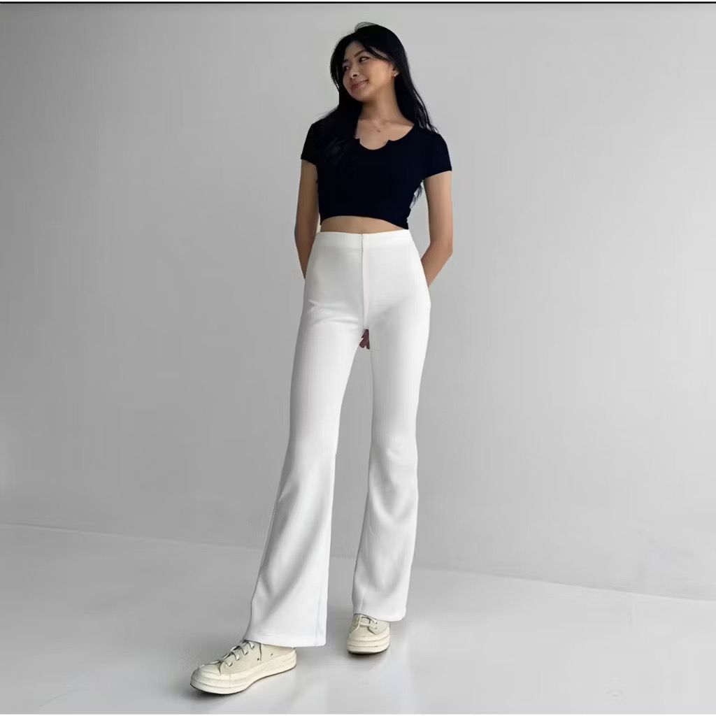 Celana Cutbray Fit And Flare Pants Bahan Adem Highwaist Stretch Melar Elastis