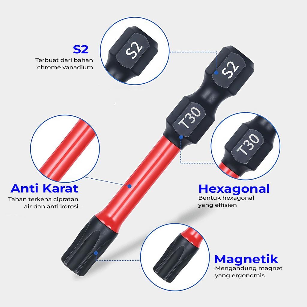 Allefix Mata Bit Torx T7-T40 10Pcs Ukuran 50MM Baja S2 Presisi Tinggi Tahan Aus - 6860