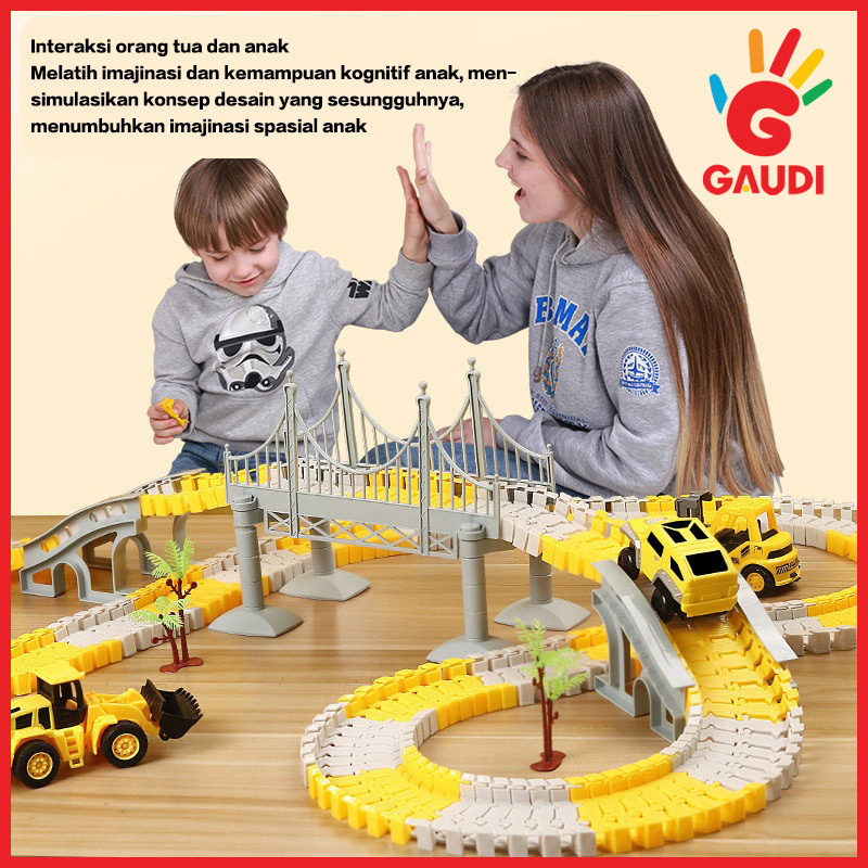 Gaudi 305/234/135pcs Mainan Kereta Api Edukatif Anak Track Listrik Engineering Mobil Mobilan DIY Perakitan Mainan Truk