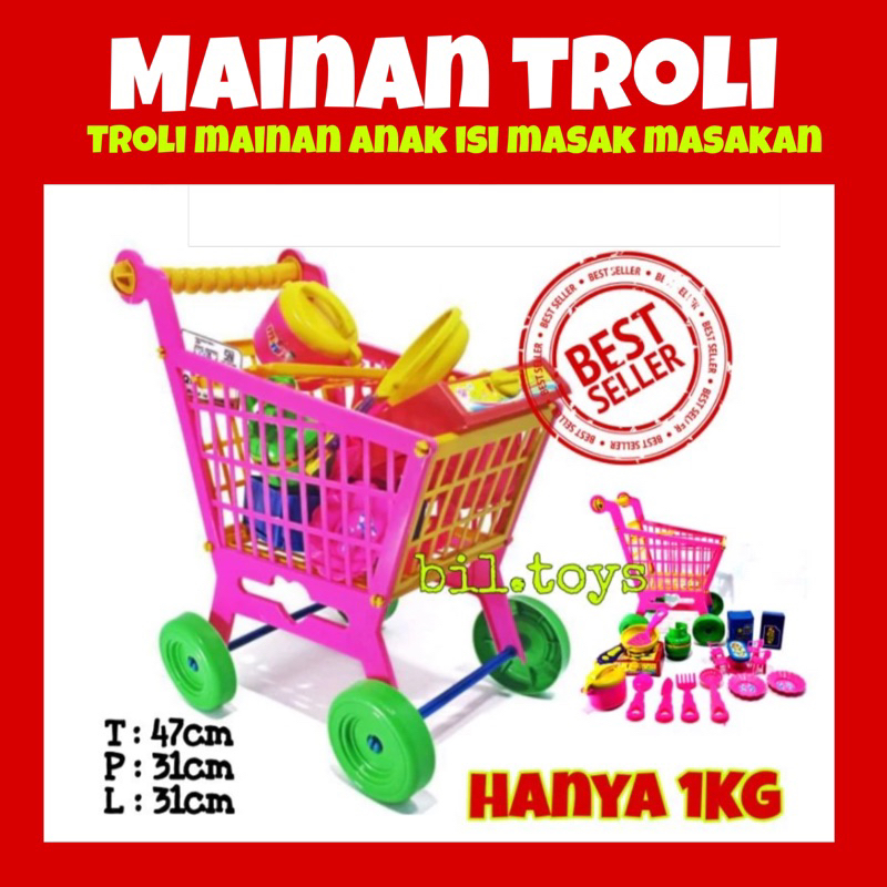 MAINAN ANAK PEREMPUAN MAINAN TROLI BELANJA MAINAN ANAK TROLLEY STROLLER KERANJANG MASAK MASAKAN BESAR