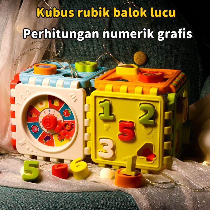 POPTOYS Mainan Anak Puzzle Kubus Bayi Bangunan Pencocokan Mengenal Huruf Angka Balok Kognitif Grafik Angka untuk Bayi