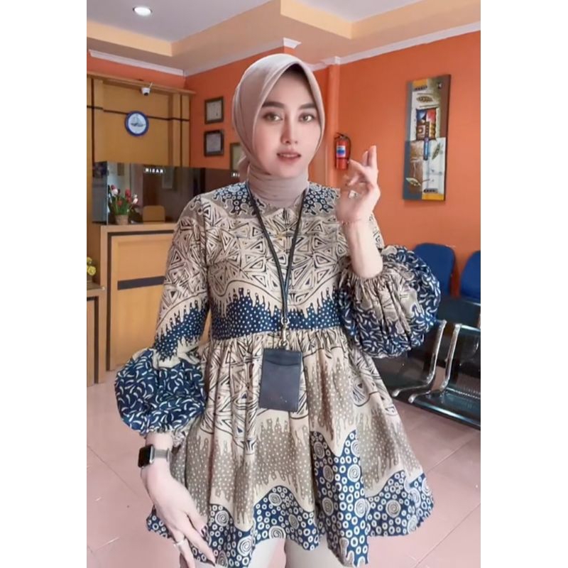Batik Wanita Asj Sa Hrb026 Kenongo Kemeja Tosca Pendek Batik Fashion Baju Wanita